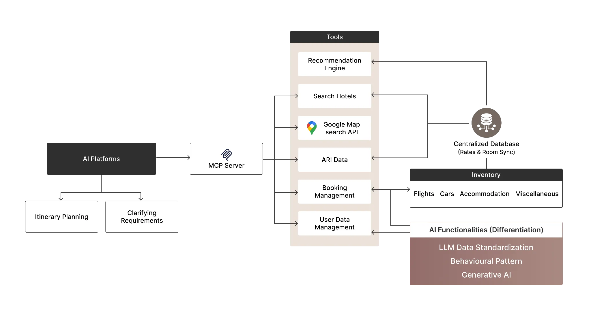 A single unified API fully cached, connects you to thousands of properties with ARI on demand, ready to be embedded into your platform. All surfaced through an MCP AI ready.